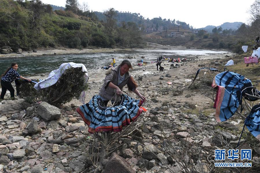 廣西南丹縣里湖瑤族鄉(xiāng),村民在河邊洗衣并就地晾曬(2018年1月12日攝)。廣西有近一半貧困人口生活在石漠化地區(qū),涉及數(shù)十個縣區(qū)。這里也是廣西飲水保障程度最低的地區(qū),解決貧困人口飲水問題是廣西脫貧攻堅戰(zhàn)“硬仗中的硬仗”?!笆濉币詠恚瑥V西加快實施農(nóng)村飲水安全鞏固提升工程。因地制宜,采取新建、擴建及管網(wǎng)延伸等多種措施,補齊貧困地區(qū)水利薄弱短板,進一步提升石漠化地區(qū)群眾飲水安全保障水平,助推脫貧攻堅。新華社記者周華攝