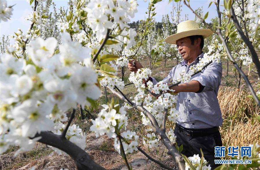 3月22日,云南省曲靖市沾益區(qū)炎方鄉(xiāng)炎方村的農(nóng)民在果園里作業(yè)。春季里,云南省曲靖市沾益區(qū)鄉(xiāng)村果園里的桃花梨花競(jìng)相綻放,景色秀美,吸引游人前來(lái)觀光。新華社記者楊宗友攝