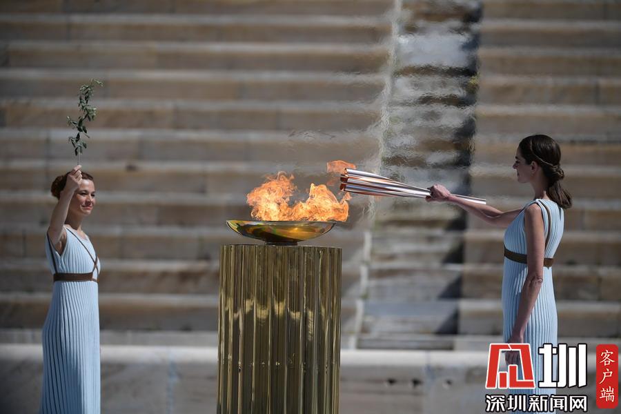 2020年3月18日,2020年東京奧運(yùn)會(huì)火炬交接儀式在希臘雅典帕納辛奈科體育場舉行。