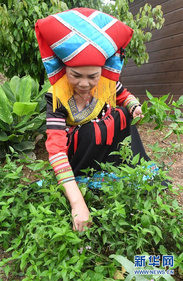 3月25日,在廣西上林縣巷賢鎮(zhèn),一名壯族女子在采摘給糯米染色所需要的植物。新華社記者陸波岸攝