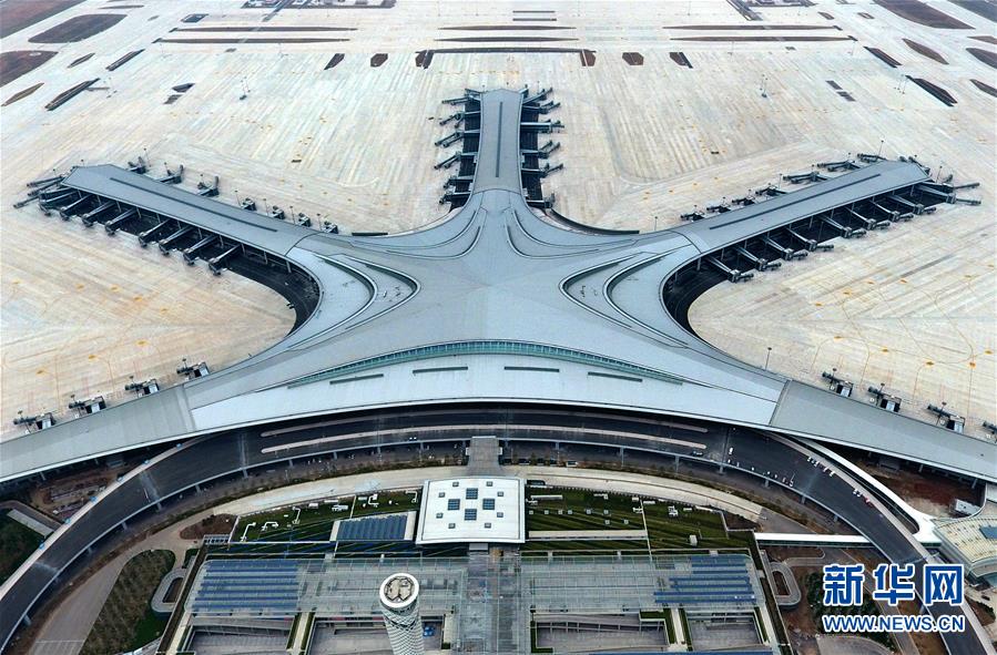 建設中的青島膠東國際機場(3月25日攝,無人機照片)。新華社記者李紫恒攝
