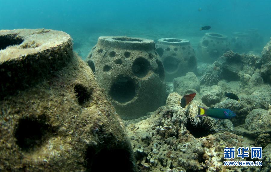 3月28日,在位于海南三亞蜈支洲島旅游區(qū)的海洋牧場,工作人員將人工魚礁有序擺放在海底,人工魚礁吊裝擺位作業(yè)完成。近日,位于海南三亞蜈支洲島旅游區(qū)的海洋牧場復(fù)工,海底作業(yè)逐漸恢復(fù)正常,開始進(jìn)行人工魚礁吊裝擺位、水下監(jiān)控清理以及日常巡護(hù)等工作。據(jù)介紹,人工魚礁有利于魚類種類增加和數(shù)量提高,蜈支洲島海域海洋牧場人工魚礁表面附著珊瑚、貝類、藻類等生物種類達(dá)120余種。新華社記者楊冠宇攝
