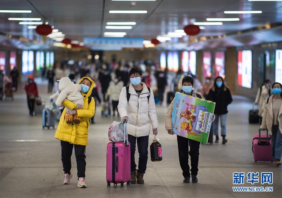 3月28日,在漢口火車(chē)站,一名小朋友幫家長(zhǎng)提行李出站。當(dāng)日零時(shí)起,武漢市恢復(fù)辦理鐵路客站到達(dá)業(yè)務(wù)。為做好抵漢旅客組織工作,武漢三大火車(chē)站安排專(zhuān)人提前與列車(chē)對(duì)接,核對(duì)下車(chē)人數(shù),并組織工作人員和鐵路志愿者提前在站臺(tái)等候接車(chē),做好組織引導(dǎo)。列車(chē)到達(dá)后,車(chē)站配合防疫部門(mén)做好旅客出站測(cè)溫、登記信息等工作,并和公交集團(tuán)、地鐵公司聯(lián)動(dòng),引導(dǎo)旅客按照去向有序換乘。新華社記者肖藝九攝