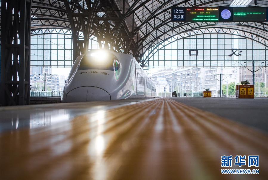3月28日,從廣州南始發(fā)的G1112次列車(chē)到達(dá)武漢站,旅客準(zhǔn)備下車(chē)。新華社記者程敏攝