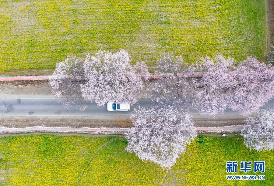 3月26日,西藏林芝境內(nèi)盛開(kāi)的桃花(無(wú)人機(jī)照片)。新華社記者 孫非 攝