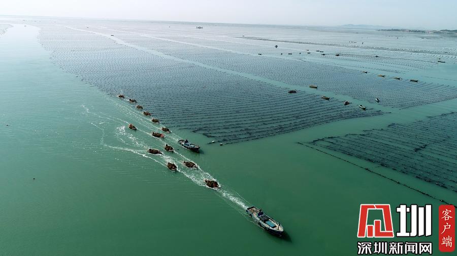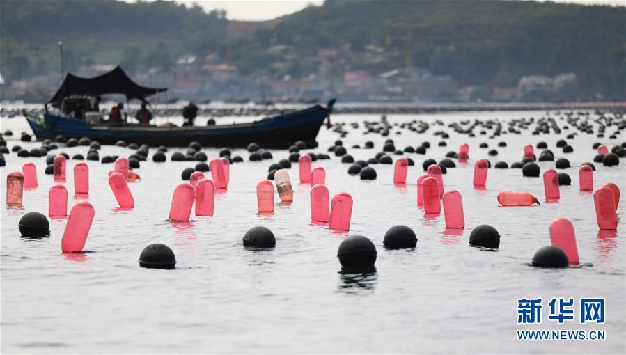目前正是遼寧省大連市長海縣扇貝和魚類收獲的季節(jié),長海縣小長山島海域經(jīng)典國家級海洋牧場呈現(xiàn)出一片繁忙的豐收景象。