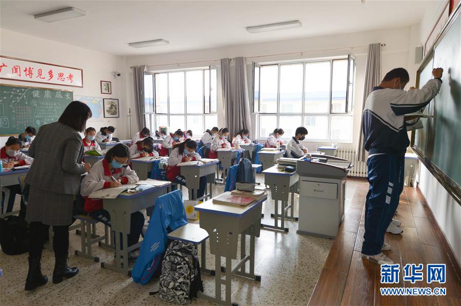 3月30日,呼和浩特市第六中學(xué)師生在教室內(nèi)上課。當(dāng)日,內(nèi)蒙古自治區(qū)全區(qū)高三和初三年級(jí)開學(xué)復(fù)課。新華社記者徐欽攝