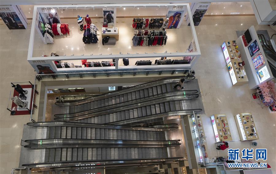 3月30日,在武商世貿(mào)廣場,一位顧客乘坐滾梯。當(dāng)日,武漢市多家商場開門迎客。新華社記者費(fèi)茂華攝