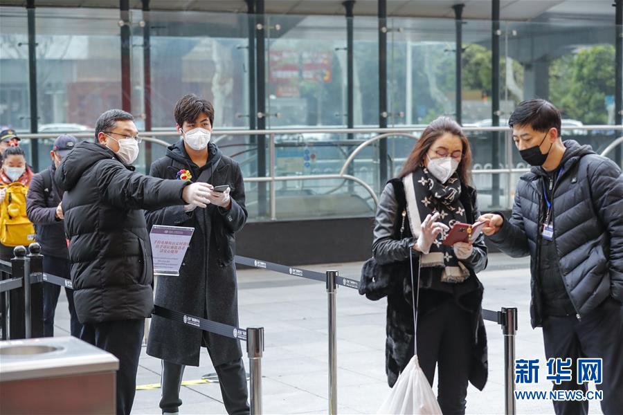 3月30日,在武漢市武商廣場外,人們在工作人員指引下,用手機掃描健康碼后進入商場購物。當(dāng)日,武漢市多家商場開門迎客。新華社記者沈伯韓攝