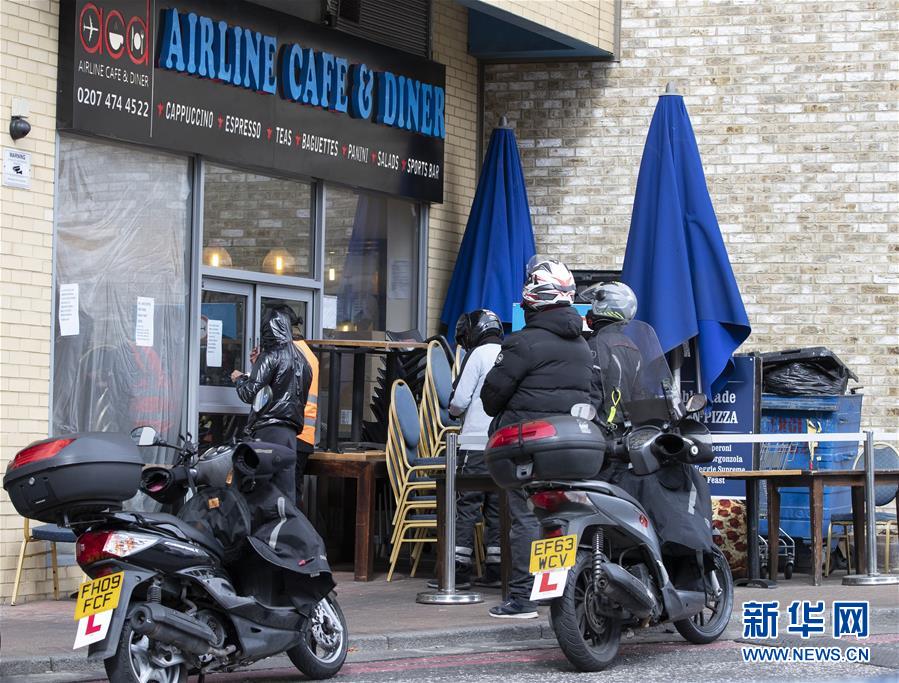3月30日,在英國倫敦,幾名外賣送餐騎手在一家餐廳外等待取餐。英國衛(wèi)生部30日發(fā)布的數據顯示,英國新冠肺炎確診病例累計22141例,較前一天增加2619例;累計死亡病例增至1408例。新華社記者韓巖攝