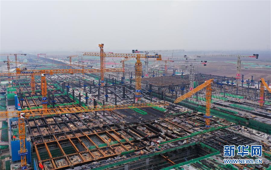 這是3月25日拍攝的京雄城際鐵路雄安站施工現(xiàn)場(無人機照片)。新華社記者楊世堯攝