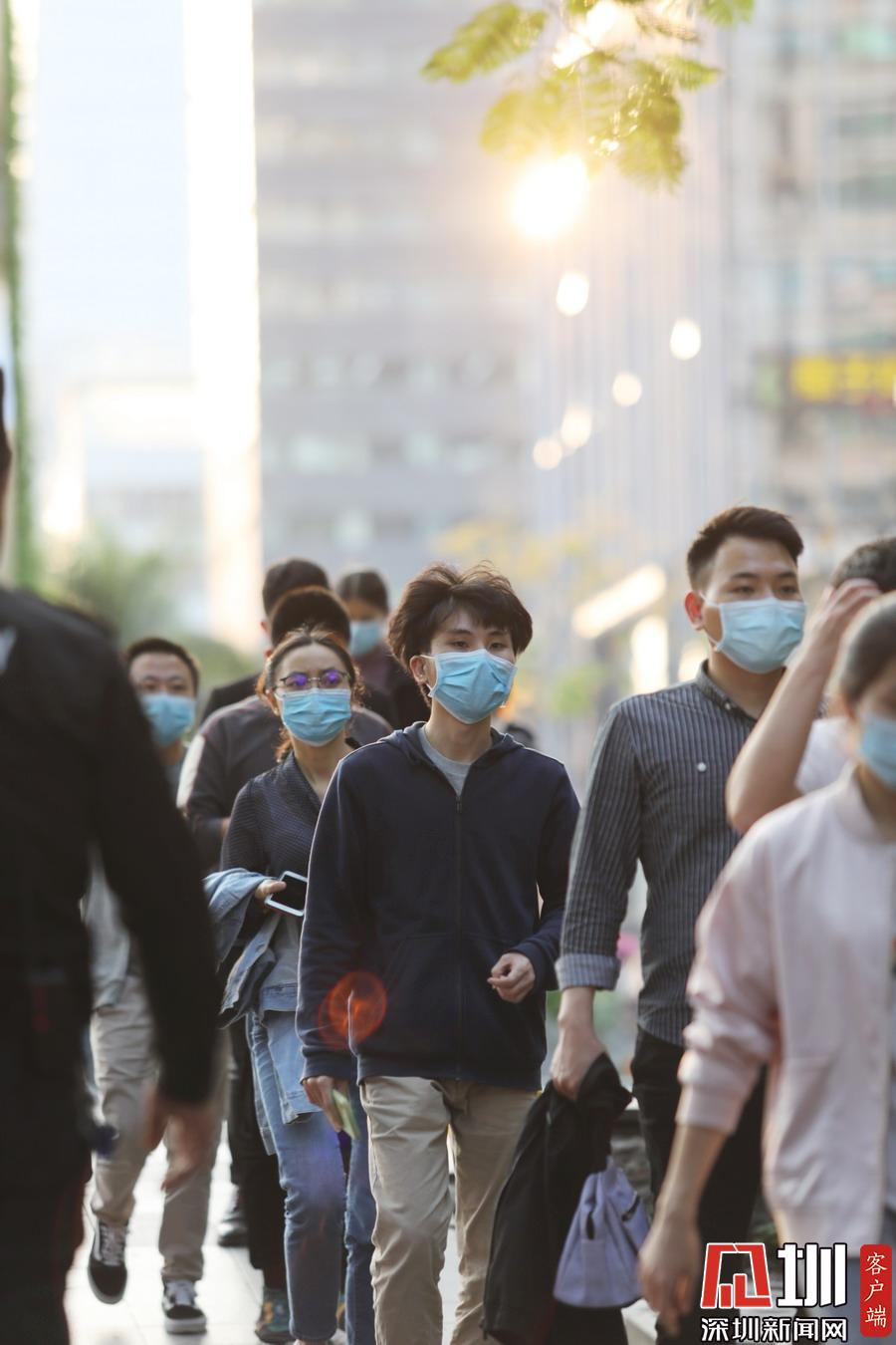 見圳客戶端·深圳新聞網(wǎng)2020年3月19日訊 下班時(shí)間,深圳地鐵一號(hào)線深大站A3出口外,下班后的市民在站外排大排長(zhǎng)龍,依次有序進(jìn)入地鐵站乘坐列車回家。