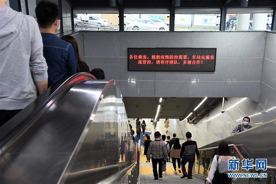 3月18日晚高峰時(shí)段,在深圳地鐵車公廟站進(jìn)站通道,電子屏幕提醒乘客車站正在進(jìn)行客流管控。近期,隨著復(fù)工復(fù)產(chǎn)的持續(xù)推進(jìn),深圳地鐵出現(xiàn)早晚客流高峰。為避免客流聚集擁擠,深圳地鐵對(duì)11座大客流站點(diǎn)實(shí)施常態(tài)化客流管控,對(duì)17座重點(diǎn)車站采取視情況客流管控。在高峰時(shí)段,乘客進(jìn)入大客流站點(diǎn)需通過(guò)站外護(hù)欄繞行,分批、間隔、有序進(jìn)站,使用深圳通卡乘車還需掃描二維碼進(jìn)行實(shí)名登記。新華社記者梁旭攝