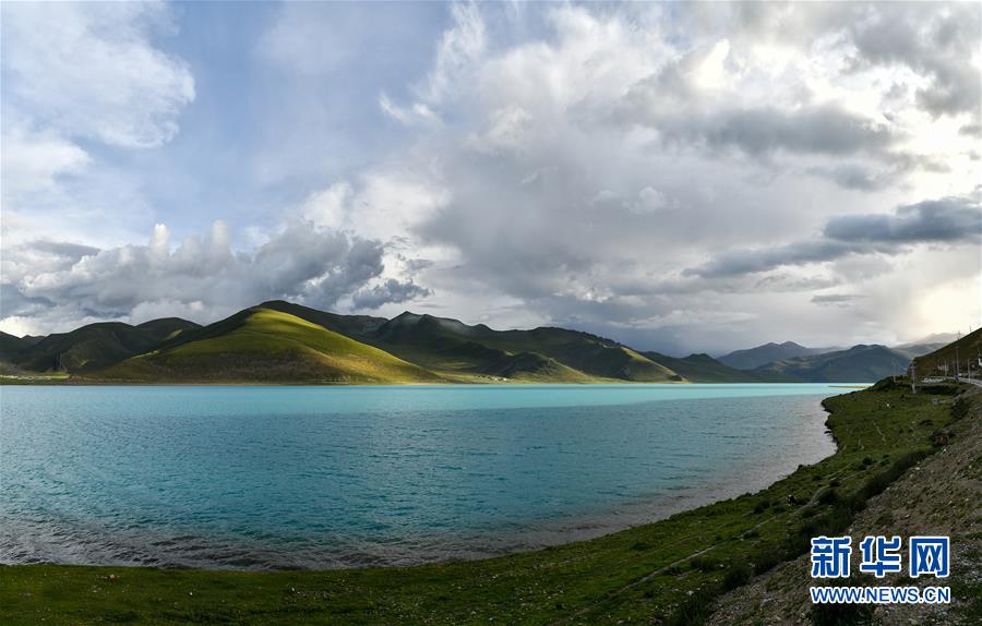 8月31日拍攝的羊卓雍錯風(fēng)光(拼接照片)。新華社記者李鑫攝