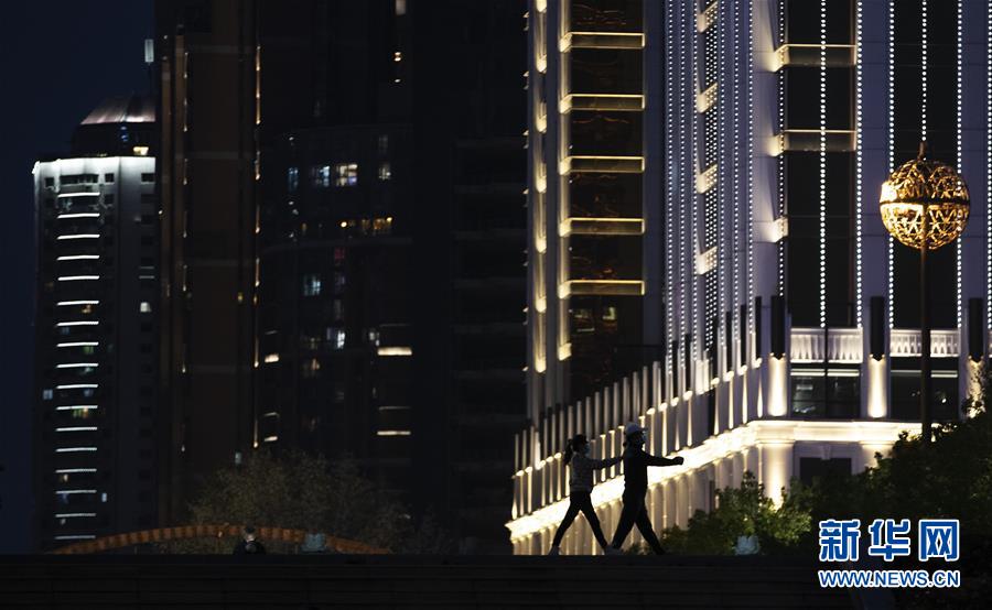 4月1日傍晚,市民在江堤上健身。新華社記者費(fèi)茂華攝