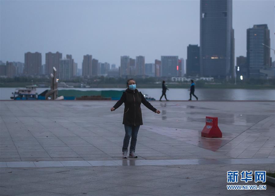 4月1日,市民在漢口江灘鍛煉。新華社記者肖藝九攝