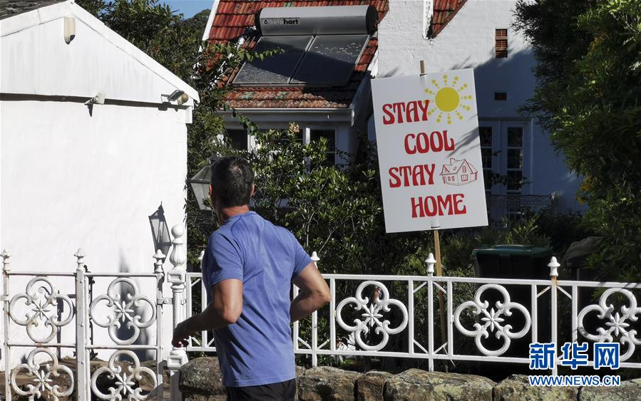 這是4月4日在澳大利亞悉尼費(fèi)爾萊特社區(qū)拍攝的鼓勵(lì)人們樂觀抗疫的標(biāo)語牌。新華社記者白雪飛攝