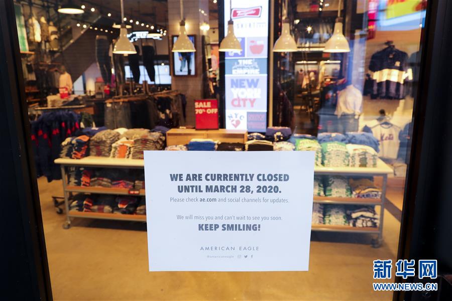 3月21日,在美國紐約時報廣場,一家服裝店貼出閉店告示。美國紐約州、伊利諾伊州、康涅狄格州20日發(fā)布針對本州居民的“居家令”,以遏制新冠病毒傳播。這些“居家令”涵蓋紐約、洛杉磯、芝加哥等大城市,影響數千萬人。白宮20日發(fā)表聲明說,總統特朗普已宣布紐約州出現“重大災難”,命令聯邦政府支援該州抗擊新冠肺炎疫情。新華社記者王迎攝