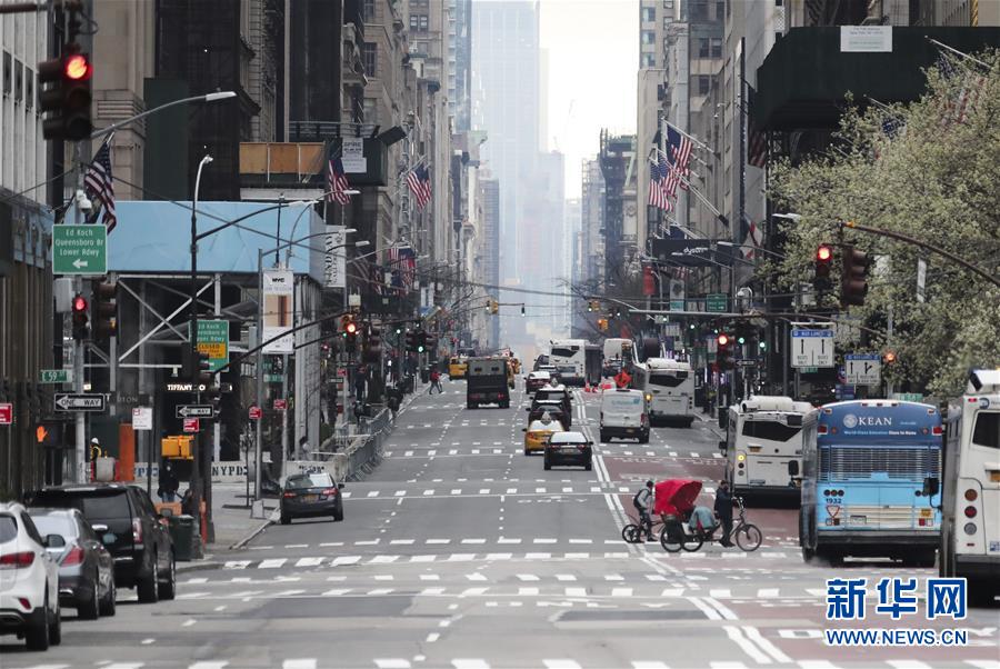 3月19日,美國(guó)紐約曼哈頓街頭車輛稀少。新華社記者王迎攝
