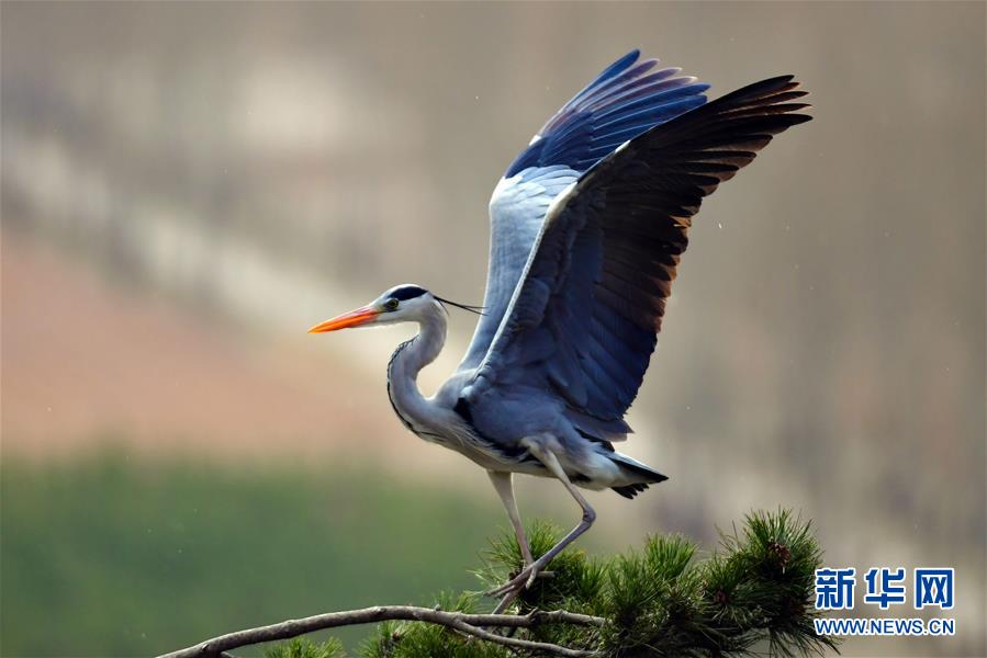 春日,大批蒼鷺在山西省呂梁市方山縣積翠鄉(xiāng)的樹林之中飛舞嬉戲,構(gòu)成一幅幅和諧生態(tài)畫卷。新華社發(fā)(劉亮亮攝)