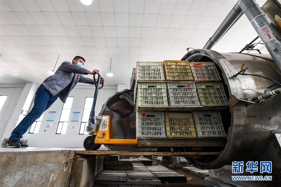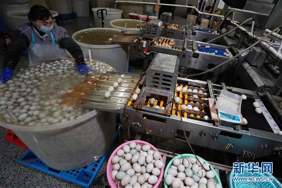 4月15日,在江蘇高郵鴨集團(tuán),工人在生產(chǎn)線上忙碌。“高郵鴨蛋”是江蘇高郵的特色農(nóng)業(yè)名片。近年來,當(dāng)?shù)卦诹挤N繁育、生態(tài)養(yǎng)殖、產(chǎn)品加工等方面加大力度,推動(dòng)高郵鴨蛋品牌化建設(shè),讓小鴨蛋成為帶動(dòng)農(nóng)戶致富的大產(chǎn)業(yè)。2019年,高郵市共計(jì)生產(chǎn)熟制鴨蛋產(chǎn)品近11.2億枚,年產(chǎn)值近17.68億元。新華社記者季春鵬攝