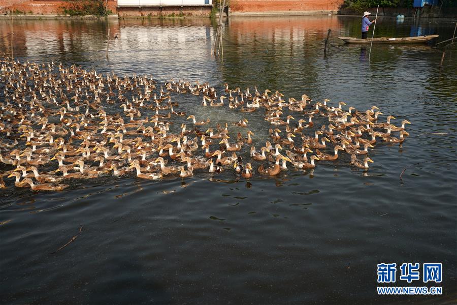 這是4月15日拍攝的江蘇高郵鴨良種繁育中心里的鴨群?!案哙]鴨蛋”是江蘇高郵的特色農(nóng)業(yè)名片。近年來,當(dāng)?shù)卦诹挤N繁育、生態(tài)養(yǎng)殖、產(chǎn)品加工等方面加大力度,推動(dòng)高郵鴨蛋品牌化建設(shè),讓小鴨蛋成為帶動(dòng)農(nóng)戶致富的大產(chǎn)業(yè)。2019年,高郵市共計(jì)生產(chǎn)熟制鴨蛋產(chǎn)品近11.2億枚,年產(chǎn)值近17.68億元。新華社記者李博攝