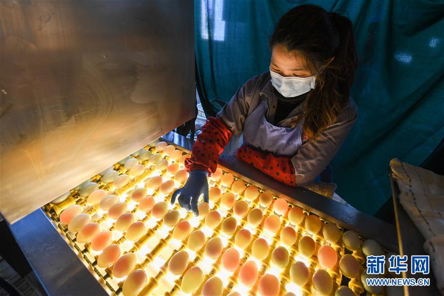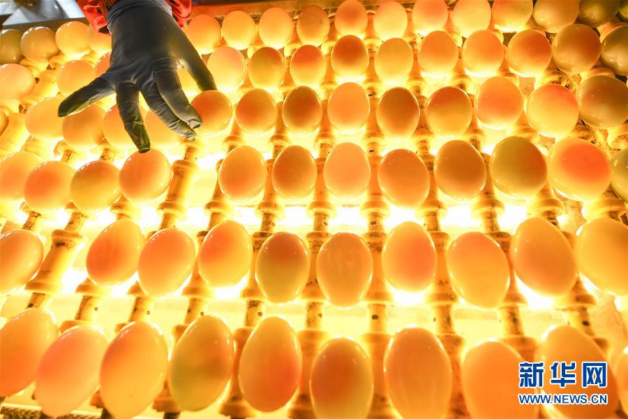 江蘇高郵鴨集團(tuán)的工作人員在生產(chǎn)線上對鴨蛋進(jìn)行光檢作業(yè)(4月15日攝)。“高郵鴨蛋”是江蘇高郵的特色農(nóng)業(yè)名片。近年來,當(dāng)?shù)卦诹挤N繁育、生態(tài)養(yǎng)殖、產(chǎn)品加工等方面加大力度,推動(dòng)高郵鴨蛋品牌化建設(shè),讓小鴨蛋成為帶動(dòng)農(nóng)戶致富的大產(chǎn)業(yè)。2019年,高郵市共計(jì)生產(chǎn)熟制鴨蛋產(chǎn)品近11.2億枚,年產(chǎn)值近17.68億元。新華社記者李博攝