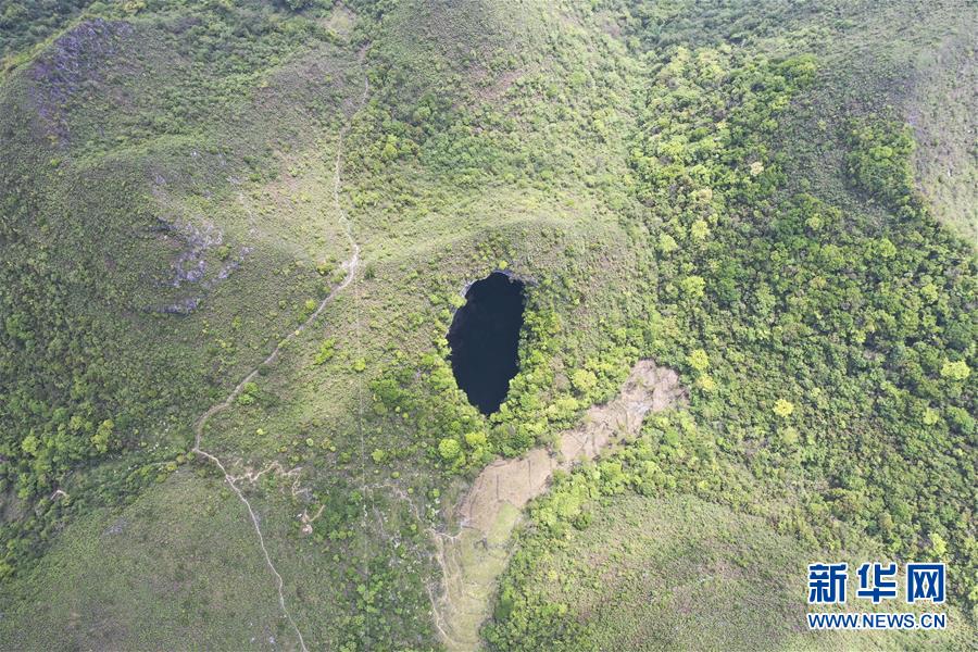 這是4月19日拍攝的中國樂業(yè)—鳳山世界地質(zhì)公園內(nèi)的天坑(無人機照片)。新華社記者曹祎銘攝