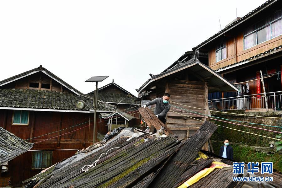 4月19日,貴州省從江縣加榜鄉(xiāng)加車村脫貧攻堅指揮所的駐村干部幫助農(nóng)戶拆除廢棄圈舍。貴州省從江縣把人居環(huán)境整治作為脫貧攻堅工作的一項重要舉措來抓,對鄉(xiāng)村規(guī)劃范圍內(nèi)長期無人居住的危房、廢棄禾倉、棚圈、柴草房和房前屋后的殘垣斷壁等進(jìn)行清理整治,進(jìn)行復(fù)墾復(fù)綠,同時開展農(nóng)戶衛(wèi)生和村寨環(huán)境整治,做到鄉(xiāng)村環(huán)境干凈、衛(wèi)生、整潔,扮靚美麗鄉(xiāng)村。新華社記者楊文斌攝
