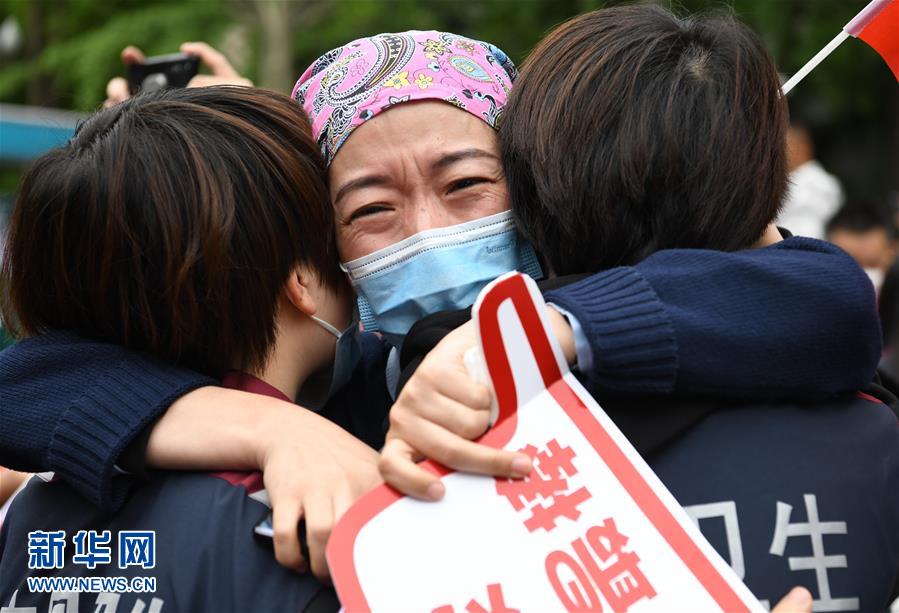 4月21日,在四川大學(xué)華西醫(yī)院,醫(yī)療隊隊員和同事相互擁抱。當(dāng)日,來自四川大學(xué)華西醫(yī)院、華西第二醫(yī)院、華西第四醫(yī)院的醫(yī)療隊隊員解除隔離休整,與分別許久的家人、同事團聚,緊緊相擁。新華社記者王曦攝