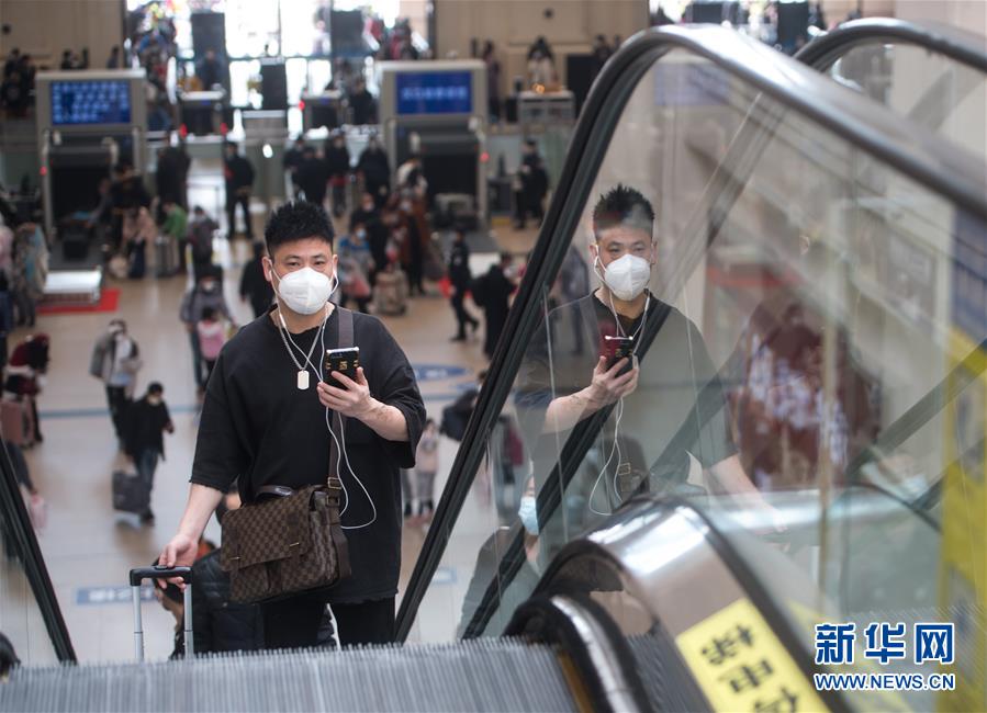 4月8日,乘客在漢口火車(chē)站進(jìn)站乘車(chē)。新華社記者肖藝九攝