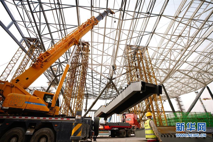 4月24日,中鐵建設(shè)集團(tuán)的工人在星火站施工。北京星火站是京沈高鐵的始發(fā)站,站房總建筑面積18.3萬平方米,將于2020年底完工。目前正在進(jìn)行混凝土主體結(jié)構(gòu)收尾工作,鋼結(jié)構(gòu)主體正在緊張施工,即將完工。新華社記者邢廣利攝