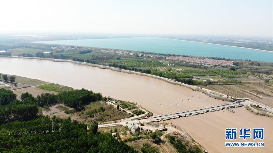 4月24日在山東濟(jì)南拍攝的黃河景色(無(wú)人機(jī)照片)。春暖花開的時(shí)節(jié),濟(jì)南黃河兩岸春風(fēng)送綠,大河、綠植與城市構(gòu)成了一幅春的畫卷。新華社記者王凱攝