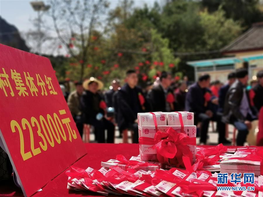 4月24日拍攝的甘肅省隴南市徽縣鐵山村公開分紅大會(huì)現(xiàn)場(chǎng)。新華社記者張新新攝