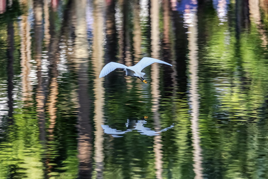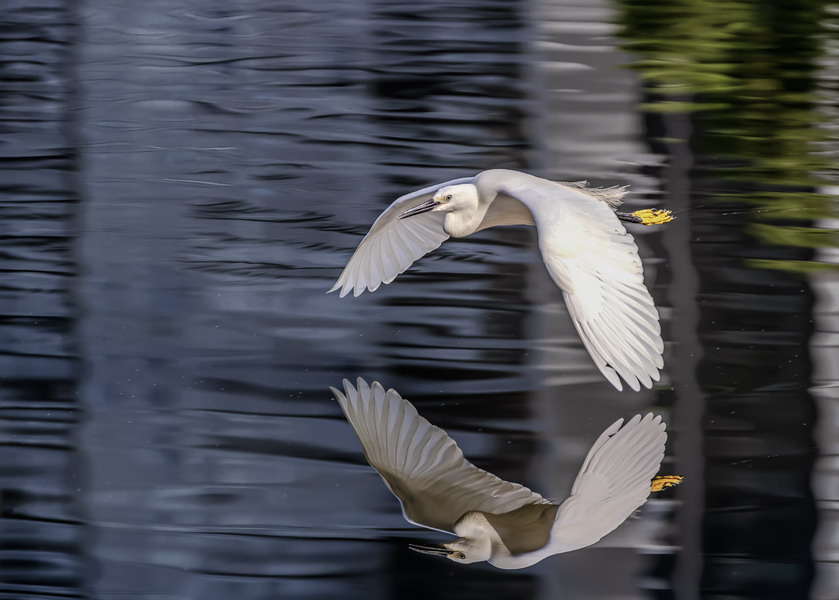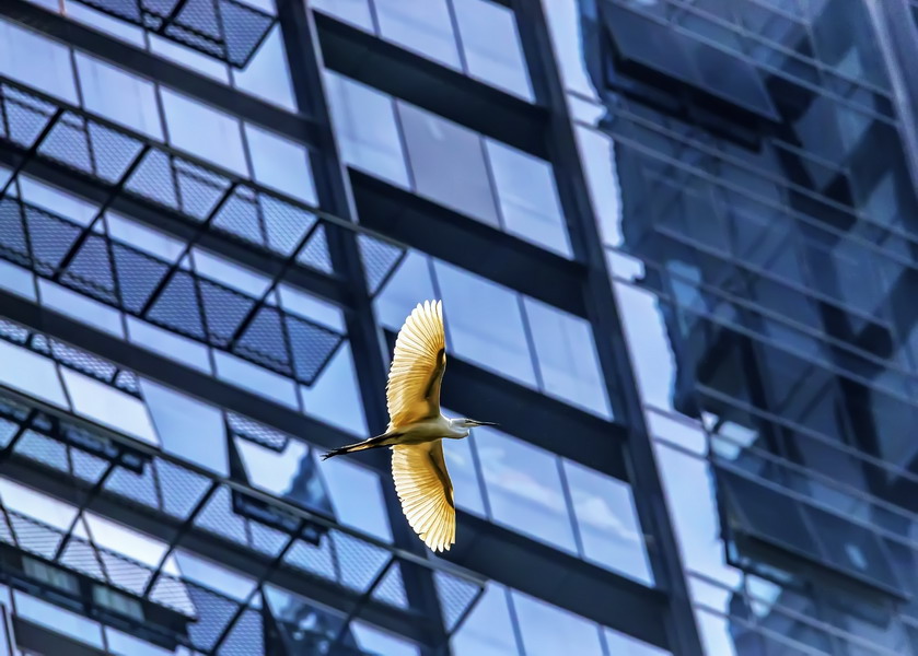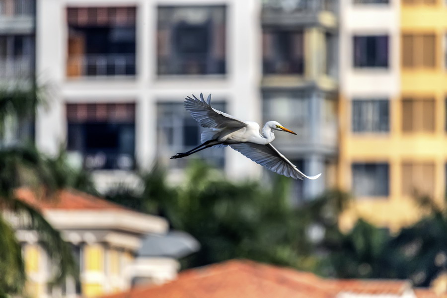 4月15日,攝于南山區(qū)華僑城天鵝堡附近。這是深圳拍鷺鳥的其中一個(gè)好去處。白鷺飛行時(shí)頭往回縮至肩背處,頸向下曲成袋狀,兩腳向后伸直,遠(yuǎn)遠(yuǎn)突出于尾后,兩翅緩慢地鼓動(dòng)飛翔。徐捷攝