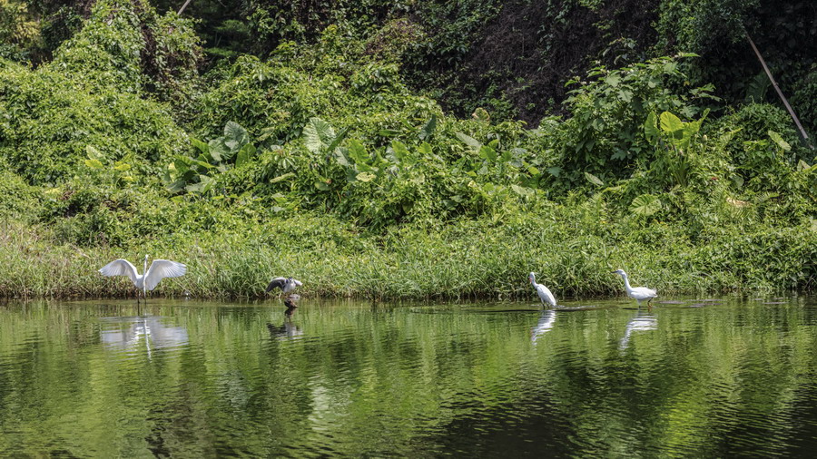 4月15日,攝于南山區(qū)華僑城天鵝堡附近。這是深圳拍鷺鳥的其中一個(gè)好去處。左一白鷺捕到食物,后方兩只白鷺追趕。徐捷攝