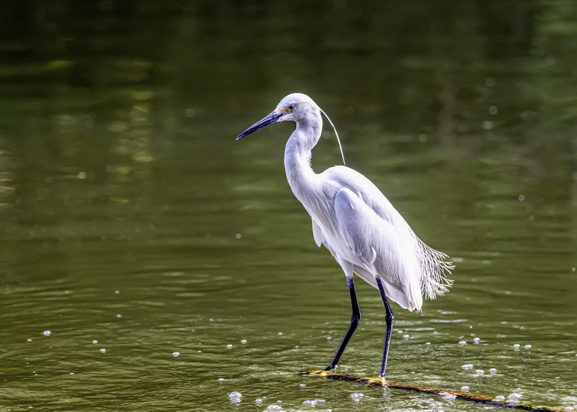 4月15日,攝于南山區(qū)華僑城天鵝堡附近。這是深圳拍鷺鳥的其中一個(gè)好去處。一只白鷺站在水面上。徐捷攝