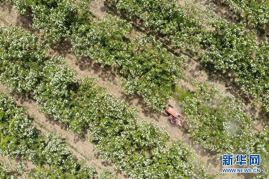 4月26日,農(nóng)民駕駛農(nóng)機(jī)在河北省清河縣馬屯紅果種植專(zhuān)業(yè)合作社的山楂種植區(qū)內(nèi)勞作(無(wú)人機(jī)照片)。4月下旬以來(lái),河北省清河縣2萬(wàn)余畝山楂樹(shù)競(jìng)相開(kāi)花,成為一道亮麗的風(fēng)景線。清河縣年產(chǎn)山楂7.5萬(wàn)余噸,山楂種植已成為當(dāng)?shù)剞r(nóng)民的重要增收途徑。新華社記者牟宇攝