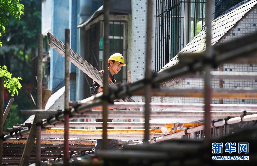 4月26日,工人在渝中區(qū)大溪溝街道雙鋼路社區(qū)改造提升項(xiàng)目施工現(xiàn)場(chǎng)作業(yè)。近段時(shí)間以來,重慶市渝中區(qū)大溪溝街道加快推進(jìn)轄區(qū)內(nèi)老舊小區(qū)改造提升工作,從環(huán)境衛(wèi)生、房屋管理及養(yǎng)護(hù)、安防及車輛管理、綠化管理等方面進(jìn)行綜合改造提升,以增強(qiáng)社區(qū)居民的幸福感、獲得感、安全感。新華社記者王全超攝