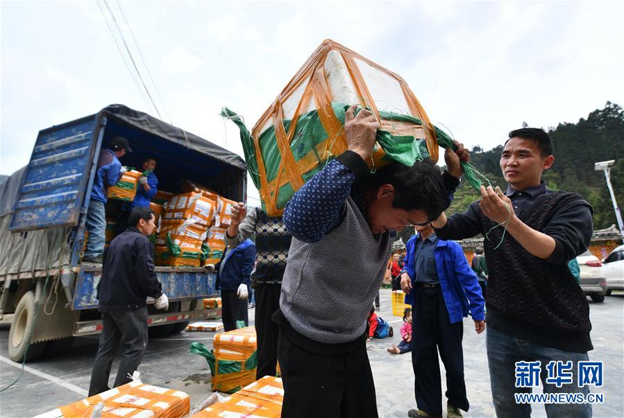 3月25日,在桂黔烏英苗寨,村民在搬運螺苗,準(zhǔn)備投放。新華社記者黃孝邦攝