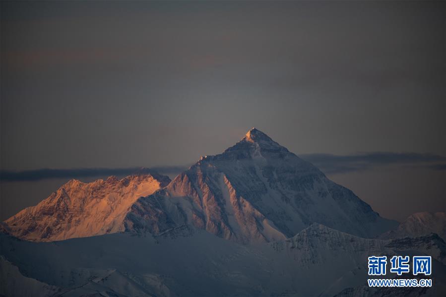 日出時(shí)分,在加烏拉山口拍攝的珠峰(4月25日攝)。春夏之交,“世界之巔”珠穆朗瑪峰分外美麗。拂曉之際,朝霞映照珠峰,“萬山之宗”雄壯而柔和。新華社記者普布扎西攝
