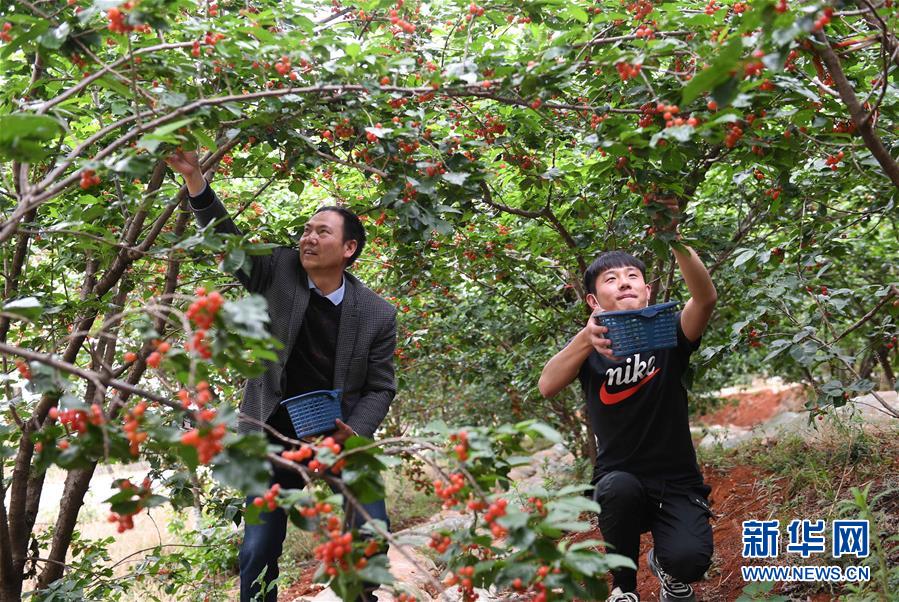 4月28日,兩名游客在云南省富民縣赤鷲鎮(zhèn)普橋村果園摘櫻桃。云南省富民縣赤鷲鎮(zhèn)大力發(fā)展特色種植業(yè),全鎮(zhèn)種植櫻桃4000余畝,幫助當(dāng)?shù)剞r(nóng)民增收致富。新華社記者楊宗友攝