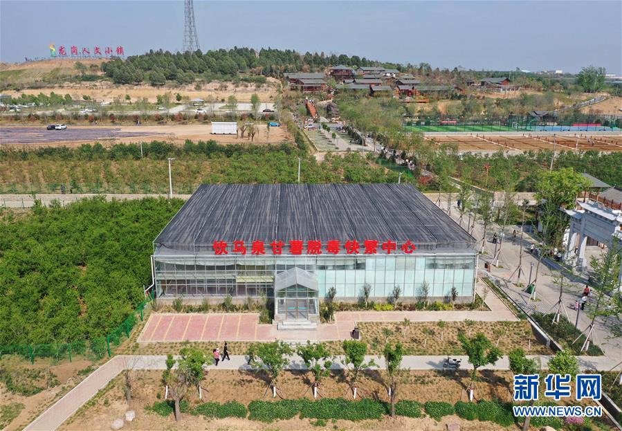 這是5月1日拍攝的河南省鶴壁市淇濱區(qū)鉅橋鎮(zhèn)崗坡村飲馬泉甘薯脫毒快繁中心(無(wú)人機(jī)照片)。 新華社記者馮大鵬攝
