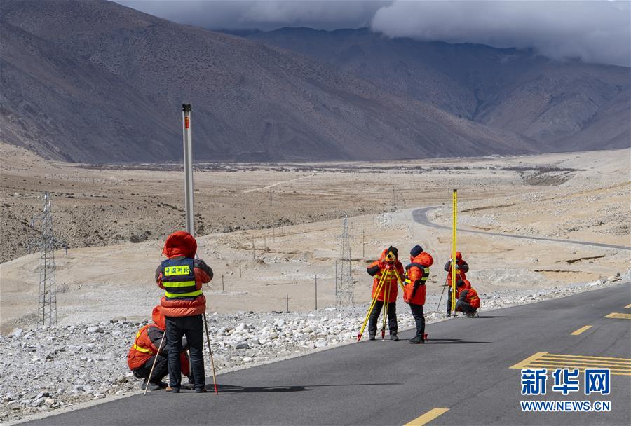 國測一大隊隊員在西藏定日縣曲當鄉(xiāng)境內(nèi)進行水準測量(4月18日攝)。水準測量是一種利用提供水平視線的儀器(如水準儀、水準標尺),測定地面不同點之間的高差,并以此推算高度的一種方法,是經(jīng)典大地測量的重要技術(shù)之一。在目前正在進行的2020珠峰高程測量中,部分國測一大隊隊員承擔了水準測量的任務(wù)。新華社記者孫非攝