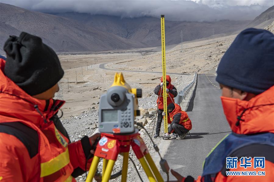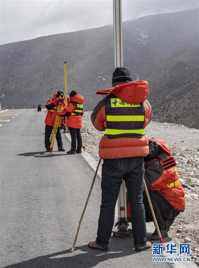 國(guó)測(cè)一大隊(duì)隊(duì)員在西藏定日縣曲當(dāng)鄉(xiāng)境內(nèi)進(jìn)行水準(zhǔn)測(cè)量(4月18日攝)。水準(zhǔn)測(cè)量是一種利用提供水平視線的儀器(如水準(zhǔn)儀、水準(zhǔn)標(biāo)尺),測(cè)定地面不同點(diǎn)之間的高差,并以此推算高度的一種方法,是經(jīng)典大地測(cè)量的重要技術(shù)之一。在目前正在進(jìn)行的2020珠峰高程測(cè)量中,部分國(guó)測(cè)一大隊(duì)隊(duì)員承擔(dān)了水準(zhǔn)測(cè)量的任務(wù)。新華社記者孫非攝