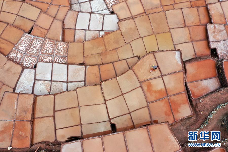 西藏芒康縣納西民族鄉(xiāng)加達(dá)村村民在鹽田里勞作(5月4日攝,無人機(jī)照片)。位于西藏昌都市芒康縣瀾滄江畔的古鹽田,至今仍保持最原始的手工曬鹽方式。據(jù)史料記載,早在唐朝時期這里就開始曬鹽。鹽田在瀾滄江兩岸依山而建,層層疊疊,錯落有致。新華社記者王澤昊攝