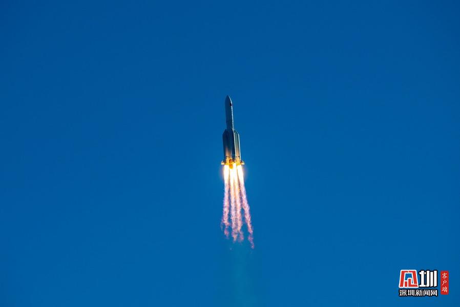 2020年5月5日18時,長征五號B運載火箭在文昌發(fā)射場點火升空,這是在第一次程序轉(zhuǎn)彎后正常飛行。