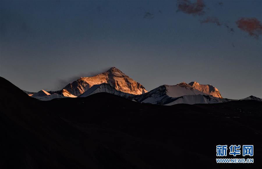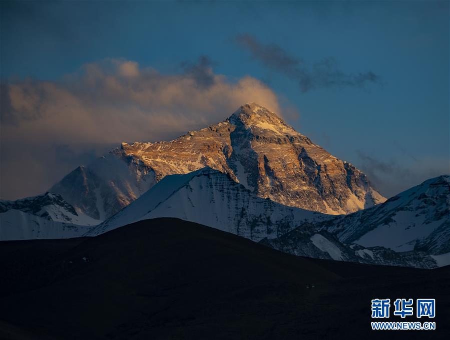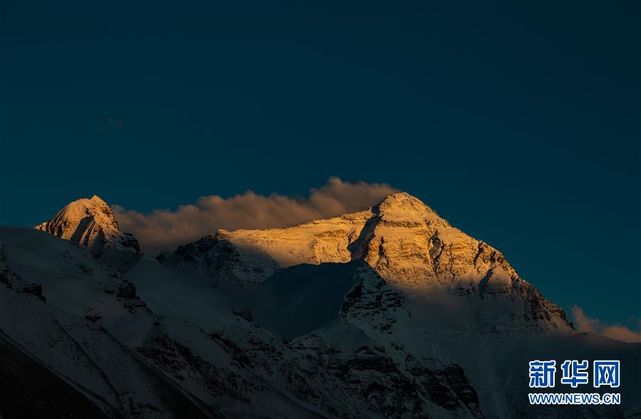 這是5月3日拍攝的夕陽(yáng)下的珠峰。世界第一高峰珠穆朗瑪峰終年積雪,頂峰云霧繚繞,美不勝收。新華社記者晉美多吉攝