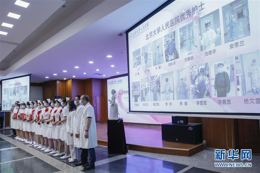 5月11日,獲獎護(hù)士在護(hù)士節(jié)活動上合影。在國際護(hù)士節(jié)到來之際,北京大學(xué)人民醫(yī)院11日舉辦慶祝護(hù)士節(jié)暨優(yōu)秀集體和個人表彰活動,并邀請?jiān)踽t(yī)療隊(duì)護(hù)士代表分享戰(zhàn)“疫”故事。我國今年護(hù)士節(jié)的主題為“致敬護(hù)士隊(duì)伍,攜手戰(zhàn)勝疫情”。新華社記者張玉薇攝