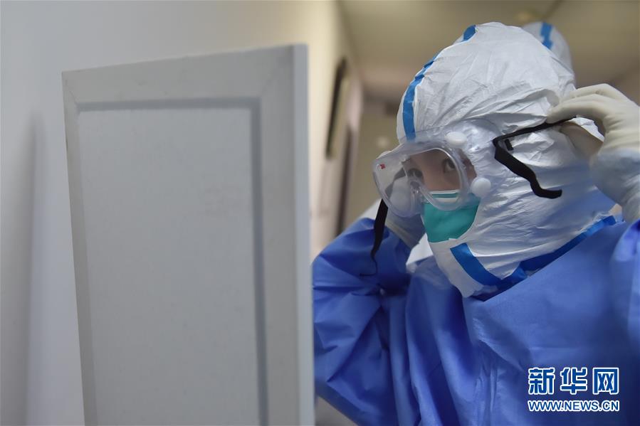 5月11日,在北京地壇醫(yī)院感染二科病房外,護士劉印懷穿戴防護設備準備進入病房。北京地壇醫(yī)院是北京市收治新冠肺炎患者的定點醫(yī)院之一,醫(yī)院的醫(yī)護人員一直奮戰(zhàn)在抗擊疫情的一線。在國際護士節(jié)前夕,記者前往北京地壇醫(yī)院,記錄下抗疫一線護士的日常工作狀態(tài)。新華社記者彭子洋攝